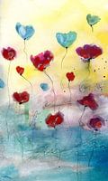 Over ‘Parmantig 2 blauwe en rode bloemen’ van Claudia Gründler