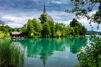 Het water van de Wörtersee in Oostenrijk is heel stil, haast geen beweging. Daarmee ontstaat een grote spiegel dat voor de Parochiekerk van Maria Wörth aan de Wörthersee. De lucht betrekt langzaam en een dik wolkendek ontwikkelt zich.