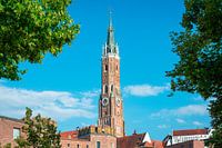 De katholieke kerk St. Jodok in de Neder-Beierse stad Landshut op een zomerse dag