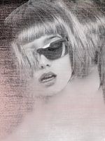 Een gepassioneerde collage van moderne kunst. Een portret van een vrouw in zachte pastelkleuren en zwart-wit.