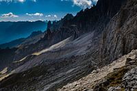 De Italiaanse Dolomieten zijn mijn favoriete bergen. De enorme, stijl oprijzende kalkrotsen zijn karakteristiek voor de Dolomieten. Wandelen in deze prachtige natuur doe ik van berghut naar berghut. Hier op weg naar de Passo delle Cigolade.