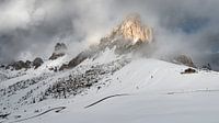 De reuzen worden omhuld door de dramatische wolken, wat het beeld echt dramatisch maakt.