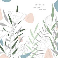 Deze illustratie neemt je mee naar een zonnige dag. De verschillende planten, bloemen en bladeren wisselen elkaar af in blauw, groen en roze. Door de witte achtergrond is dit kunstwerk eigenlijk voor elke ruimte geschikt. Of dit nou de slaapkamer, woonkamer, keuken, studeerkamer of kinderkamer is,