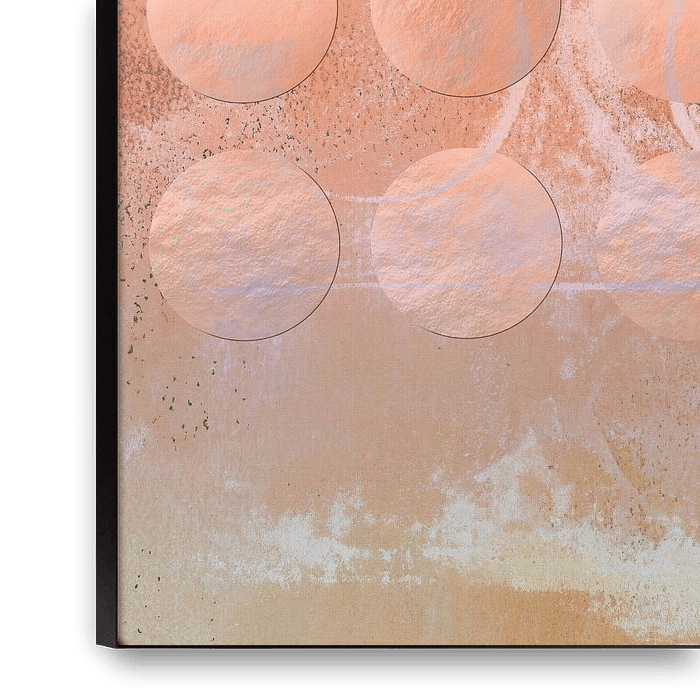 Deze abstracte kunstdruk heeft een dromerige en grillige interpretatie van geometrische kunst in zacht roze, beige en terracotta. De ronde vormen en rechte lijnen creëren een moderne compositie die zowel rustgevend als opbeurend is. De versleten textuur voegt diepte en dimensie toe aan het stuk, terwijl de minimalistische en moderne…