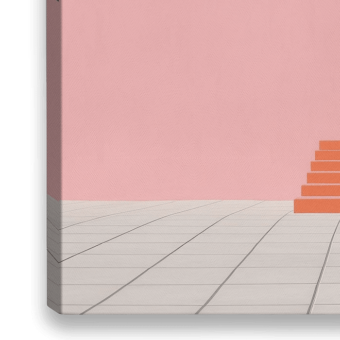 Heldere lijnen en pastelkleuren vangen de stilte van een zonnige stad. Een minimalistisch spel tussen architectuur, licht en schaduw.