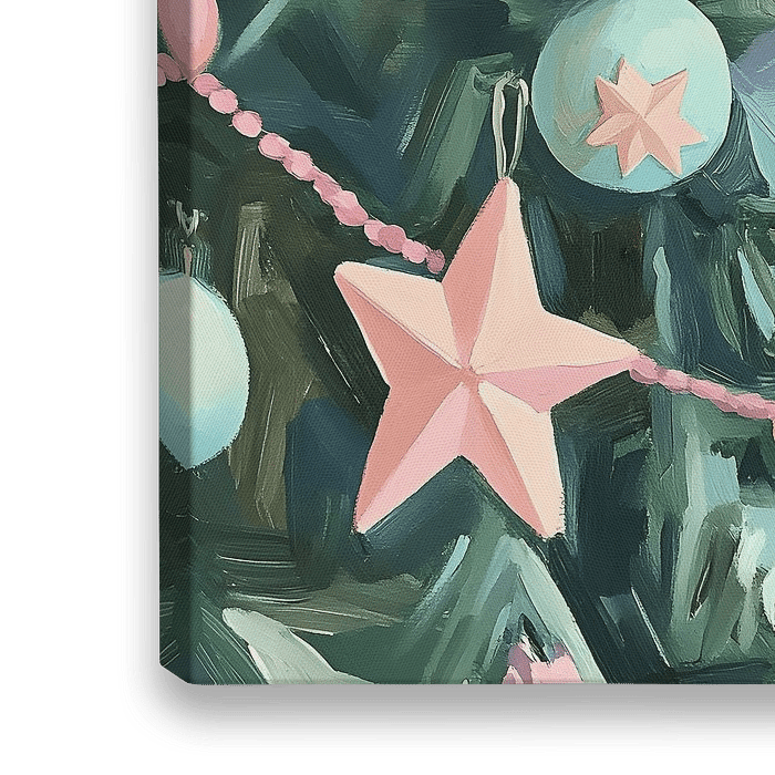 In dit kunstwerk worden de Kerstsferen tot leven gebracht in een mix van pastel kleuren en tinten, die prachtig samensmelten en een feestelijke Kerst sfeer oproepen.