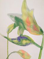 Origineel schilderij is gemaakt met ecoline in heldere pasteltinten. Onderdeel van een serie abstracte bloemen illustraties, de afwijkende kleuren geven het geheel een modern en fris effect.