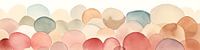 De tonen variëren van warme beige en bruine tinten tot koele grijzen en zachte pastel roze en -blauwe kleuren. De lichte aquareltechniek zorgt voor een subtiele transparantie waarbij de kleuren elkaar niet overheersen, maar juist samensmelten en een gevoel van diepte creëren. Sommige vormen hebben een zachte schaduwwerking die het driedimensionale effect versterkt. De compositie als geheel heeft een kalmerend ritme; geen enkele vorm trekt de aandacht naar zich toe, maar samen vormen ze een rustig geheel dat doet denken aan een veld vol zachte bloemblaadjes of gekleurde stenen onder water.