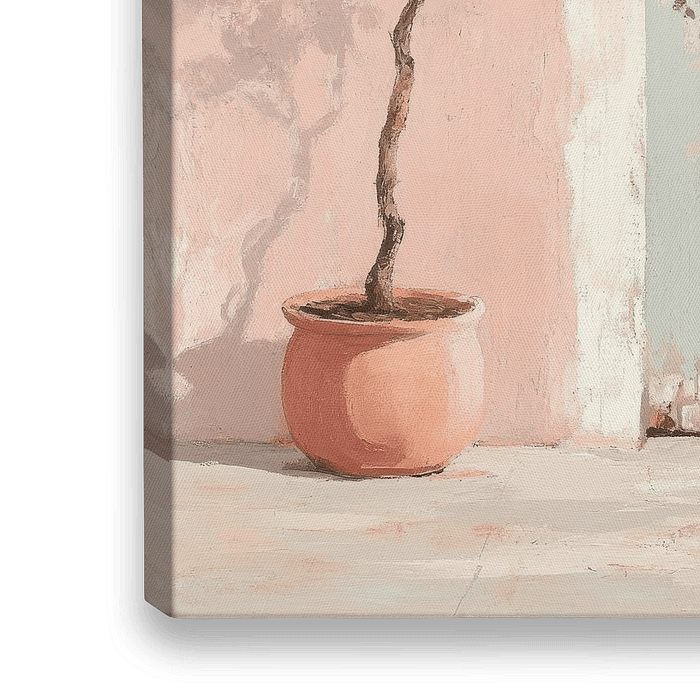 Pastel Paradise: de sinaasappelboom. Een zomers plaatje in pastelkleuren van een sinaasappelboompje in een terracotta pot naast een verweerde oude deur. Met dit werk ben je altijd in zomerse sferen!