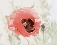 Een poppy / klaproos bewerkt. Het geeft deze fel rode bloem tegen een zachtgrijze achtergrond een zachte uitstraling. Een mooie pastel voor aan de muur. Geeft een heerlijk zomer gevoel !!