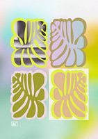 Pastel Quad draait om speels evenwicht. Vier bloemachtige vormen in zachte groenen en paarstinten, afgewerkt met subtiele kleurverlopen en spraypaintdetails. Het is een moderne knipoog naar Matisse, maar helemaal van nu.