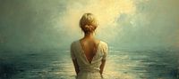 Details: vrouw, rugzicht, pastel, stilte, rustig, reflectie, elegantie, kunst, schilderij, impressionisme