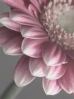 "Pastel: Zacht roze en grijs" is een foto van een close-up roze bloem (Gerbera) met een grijze achtergrond.