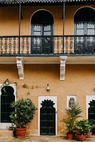 Een prachtig pastel kleurig fort / paleis in India. De mooie groene planten maken de foto af.
