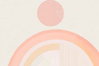 Zachte pastelkleuren dansen harmonieus in een minimalistisch universum. Een ronde stip zweeft boven harmonieuze bogen die warmte en gezelligheid oproepen. Deze compositie creëert een kalme, meditatieve sfeer die de verbeelding stimuleert en een gevoel van lichtheid uitstraalt. De vormen nodigen je uit om je onder te dompelen in een wereld van innerlijke rust en inspiratie.