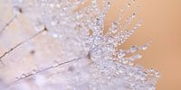 "Pastelkleurig panorama van druppels aan pluisjes" is een (extreme) macrofoto van pluisjes van een paardenbloem op een pluizenbol, met een zalmkleurige - oranje achtergrond. Aan het pluisje hangen waterdruppeltjes. ij deze foto is door de pluisjes heen gefotografeerd, waardoor je de voorliggende pluisjes als zachte waas ziet.