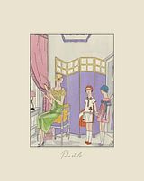 Een historische mode prent in een modern jasje: "Pastels". Geïnspireerd door de Art Deco, een stijlbeweging die opkwam in de jaren twintig van de vorige eeuw. Nieuw zakelijkheid gemengd met moderne strakke lijnen en kleuren.