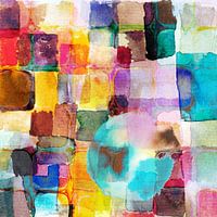 Kleurrijk mixed media aquarel. Waterverf schilderij in Paul Klee stijl.