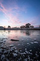 Doordat het 's nachts flink gevroren had was het ijs op korte tijd gevormd, hierdoor ontstonden mooie patronen in het ijs. De roze lucht net voor zonsopgang reflecteert ook nog eens mooi in het ijs.