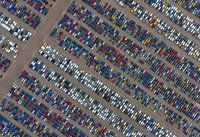 Deze foto toont een uitgestrekte parkeerplaats vanuit een recht luchtperspectief, waarbij honderden auto’s zijn geordend in strakke, herhalende rijen. De compositie benadrukt het grafische karakter van het landschap, waarin lijnen, kleuren en patronen de hoofdrol spelen. Elke auto lijkt onderdeel van een groter systeem, waardoor…