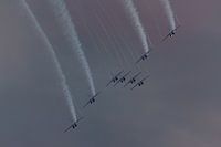 De prachtige en kleurrijke show van de Patrouille de France wordt uitgevoerd met in totaal 8 Alpha Jet straaltrainers.
