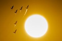 Het Zwitserse bekende militaire aerobatic team Patrouille Suisse tijdens een airshow bij zonsondergang. De Patrouille Suisse is een aerobatic-team van de Zwitserse luchtmacht. Het team vliegt met zes Northrop F-5E Tiger II straaljagers. De Patrouille Suisse werd opgericht op 22 augustus 1964 met vier Hawker Hunters. Er werden ook twee…