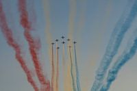 De prachtige en kleurrijke show van de Patrouille de France wordt uitgevoerd met in totaal 8 Alpha Jet straaltrainers.