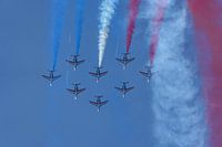 De prachtige en kleurrijke show van de Patrouille de France wordt uitgevoerd met in totaal 8 Alpha Jet straaltrainers.