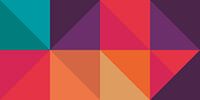 Een levendige geometrische compositie met een raster van driehoekige vormen gerangschikt in twee rijen en vier kolommen. De algehele stijl is modern en minimalistisch met de nadruk op strakke lijnen en een gedurfd kleurenpalet.