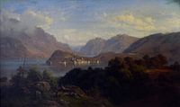 Op het landschap ligt het meer tussen de bergen en typische Italiaanse dorpen en groen van bomen.