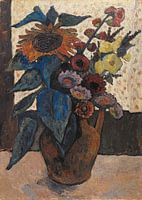 Paula Modersohn-Becker-Still life with sunflowers, hollytocks and georgines