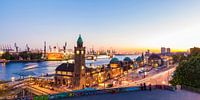 Haven van Hamburg met 's avonds de aanlegsteigers.