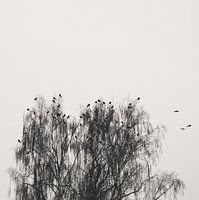 Dieses minimalistische Winter Bild mit einem Baum und Vögeln wude fotografiert in Deutschland, Bayern, unweit von meinem Haus.