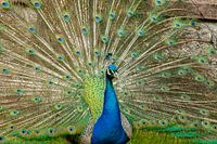 De Pauw, Pavo cristatus. Blauwe Pauw kwam vroeger veel voor op boerderijen. tegenwoordig worden ze vaak gezien in parken en kinderboerderijen. De mannelijke vogels worden graag gezien met hun uitgewaaierde staart. De veren van de mannen worden nog vaak gebruikt ter decoratie op diverse voorwerpen.