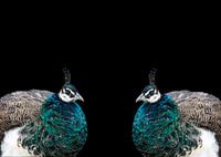 Ina Hölzel fotografie en beeldbewerking. De schitterende pauw met zijn mooie kleuren zie je zo in tweevoud. Dus dubbel genieten op plexiglas of doek!