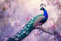 In betoverende kleuren ontvouwt een prachtige pauw zijn majestueuze veren, omringd door delicate bloemen die de lente belichamen. De gloeiende ogen van de veer glinsteren betoverend en voegen elegantie toe aan elke kamer. Dit kunstwerk is ideaal voor de woonkamer om een vleugje natuur en rust uit te stralen en trekt alle blikken naar zich toe.