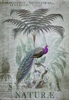 Nostalgische illustratie pauw in tropisch regenwoud