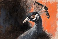 Dit opvallende schilderij brengt de schoonheid van een pauw tot leven met expressieve penseelstreken en een prachtig contrast tussen de donkere en oranje tinten. Het unieke ontwerp straalt kracht en elegantie uit, waardoor het een echte blikvanger is in elk interieur. De intense ogen en de gedetailleerde veerstructuur benadrukken de kunstzinnigheid en zorgvuldigheid van dit meesterwerk. Perfect voor moderne woonruimtes, kantoren of kunstliefhebbers die op zoek zijn naar een uniek stuk om hun collectie compleet te maken. Laat je inspireren door deze artistieke weergave van een van de meest majestueuze vogels ter wereld.