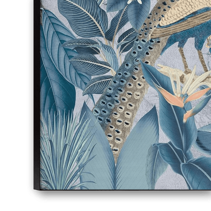 nostalgische kunstcollage met pauw in een exotische vegetatie en typografische elementen