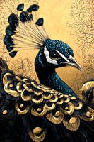 Deze prachtige afbeelding toont een elegante pauw met rijke gouden accenten op zijn veren. Het ontwerp straalt luxe en verfijning uit, waardoor het perfect past in een stijlvolle inrichting. De combinatie van diepe blauwtinten en glanzend goud zorgt voor een boeiend contrast dat zowel modern als tijdloos is. Ideaal om een luxe touch aan je woonkamer, slaapkamer of eetkamer toe te voegen. Laat je inspireren door de schoonheid van de natuur, gevangen in dit artistieke meesterwerk.