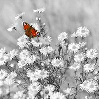 Vlinder pauw vlinder op witte bloemen (professioneel kruid)