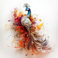 "Zwevende Pracht" betovert de toeschouwer met een mystieke symfonie van kleur en vorm, waarin de gracieuze beeltenis van een pauw lijkt te zweven in een etherische ruimte. De pauw, gehuld in weelderige kleuren, straalt een onaardse pracht uit terwijl zijn veren dansen op een onzichtbare bries.