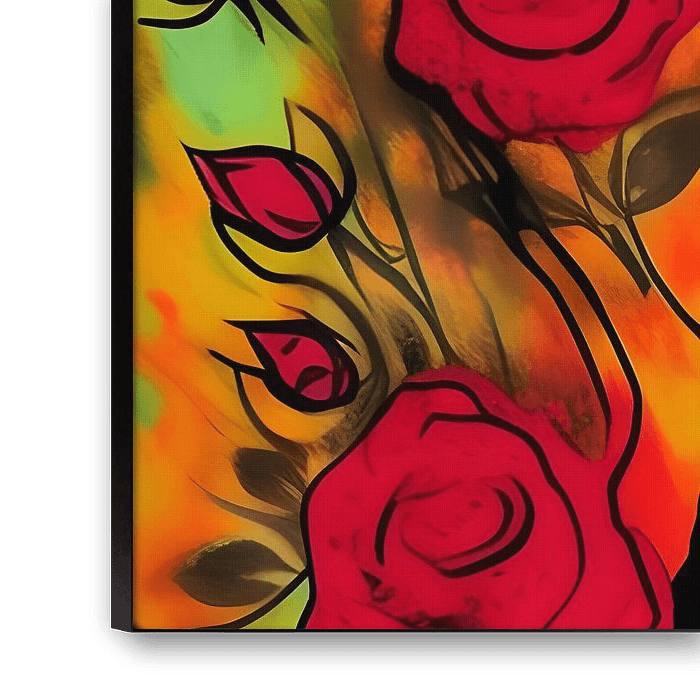 In dit werk explodeert de energie van de vurige achtergrond. De kleuren dansen als vlammen, variërend van diep rood tot levendig oranje, en creëren een dynamische achtergrond die de zintuigen prikkelt.