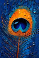 Duik in de fascinerende wereld van kleur! Deze levendige veer schittert in diepblauw en feloranje, terwijl de waterdruppels er als juweeltjes op staan. Een perfecte blikvanger voor je woonkamer, die elke kamer een elegante, artistieke toets geeft en je zintuigen betovert.