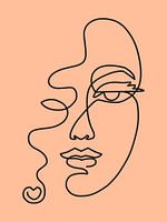 Lijntekening van een vrouwen gezicht met aan de onderkant een hartje. In de kleur Peach fuzz, de nieuwe Pantone kleur van 2024.  Leuk detail is dat de lijntekening door een 3D bewerking op de achtergrond lijkt te liggen.