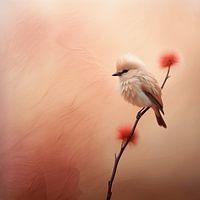 Tegen een achtergrond van zacht peach pattone ontvouwt zich een schattig tafereel. Een vrolijke vogel zit trots op een tak, omringd door twee prachtige bloeiende roze bloemen. De kleuren vormen een harmonieus palet van lenteachtige vreugde, waar de vogel lijkt te zingen en de bloemen dansen op een briesje. Een moment van puur geluk, vastgelegd in de warme omhelzing van peach pattone.