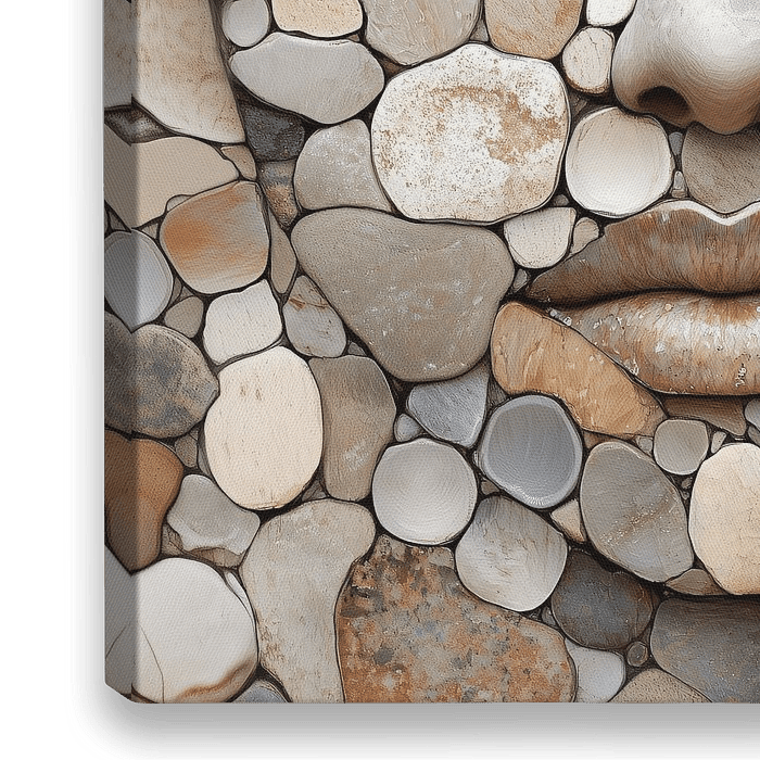 Surrealistisch close-up portret van een vrouw gemaakt van kiezelsteentjes.