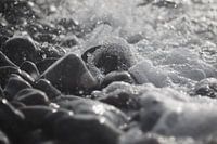 Pebbles in spray, macro shot with bokeh filter.