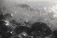 Pebbles in spray, macro shot with bokeh filter.