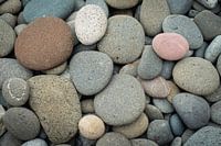 Een verzameling grijze ronde keien. Gemaakt aan het strand in Olympic National Park USA.